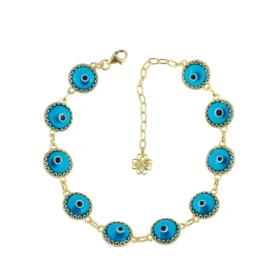 10 Beads Blue Evil Eye Gold Plated Silver Link Bracelet – Elegance & Protection