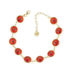 10 Beads Scarlet Evil Eye Women Gold Plated Silver Link Bracelet | Elegant Protection Jewelry