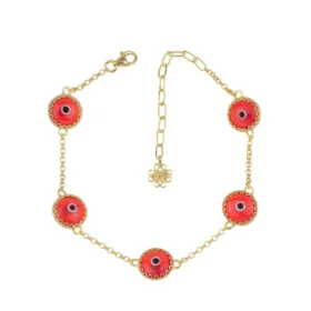 5 Beads Red Evil Eye Women Gold Plated Silver Link Bracelet – Ward Off Bad Luck in Style