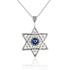 Filigree Art Evil Eye & Star of David Womens Silver Pendant Necklace Stylish Protection
