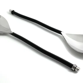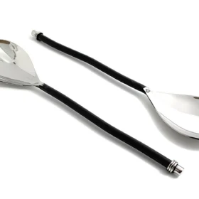 Vibhsa Salad Serving Set of 2 – Twisted Handle, Silver Finish | Stainless Steel