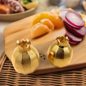 Golden Pomegranate Salt and Pepper Shakers – Handcrafted Dining Table Decorative Set