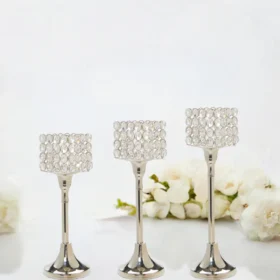 Vibhsa Crystal Aluminium Candle Holder Set – Elegant Silver Finish, Set of 3 for Exquisite Table Decor