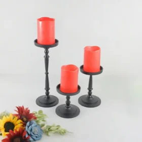 Vibhsa Elegant Matte Black Pillar Candle Holder Set of 3 – Versatile Home Decor