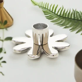 Vibhsa Decorative Flower Candle Holder – Elegant Silver Finish