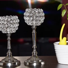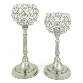 Vibhsa Round Crystal Aluminium Candle Holder Set of 2 – Elegant Home Decor