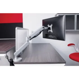 Ergonomic Single 30″ Monitor Arm in Charcoal | Adjustable Gas-Spring Mount for 17″-30″ Screens