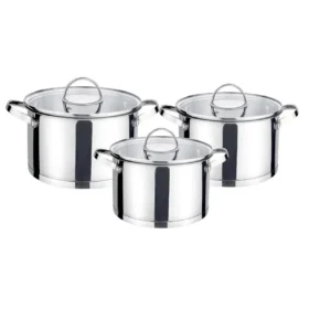 6-Piece Polished Stainless Steel Cookware Set with Lids 1.9QT, 2.7QT, 3.6QT