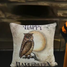 20″ x 20″ Halloween Decorative Throw Pillow “Owl” – Handwoven, Unique Design, 100% Cotton